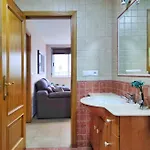 Desconectaengalicia La Lanzada, A Pie De Playa Apartment is furnished with a sofa and a work desk featuring modern facilities like a flat-screen TV with satellite channels. A bathroom comes with a bidet, a separate toilet, and a shower, along with a hair dryer and towels.